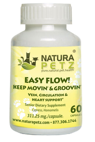 Easy Flow contains nutraceutical antioxidants, bioflavonoids, oligomeric procyanidins (OPCs), triterpenoid saponins and amines content, which may be used holistically to help support healthy circulation to all parts of the body; for heart health; as a heart and immune tonic; containing plant chemicals which may work to help reduce the risk of heart disease; may help protect cell walls throughout the body; may help encourage proper valve function; may help support the strength of blood vessels, veins, arteries and may help promote muscle cell healing and regeneration, which is critical for a dog or cat with heart dyfunction. (* As recommended by holistic veterinarians for use under a traditional medical system)
