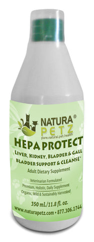 Hepa Protect Liquid is used holistically to help provide systemic liver and kidney support; as an alterative and adaptogenic tonic which may help bring the body into balance as well as alter the outer membrane of liver cells to help prevent toxins from penetrating them and may help encourage the animal body to regenerate liver cells. Also used holistically to help cleanse the liver and may encourage liver repair in cases of dysfunction; may help promote bile flow; and may help detoxify and protect the liver and kidneys by promoting bile production and by helping to inhibit the growth of certain bacteria and fungi. (* As recommended by holistic veterinarians for use under a traditional medical system)