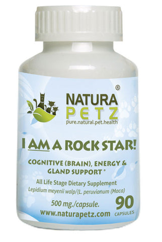 I AM A Rock Star! contains maca, which has has been recognized by the World Health Organization (WHO) as a super food and a well-studied adaptogenic herb, used holistically for its natural plant chemical content that can help improve your pet's resistance to metabolic and oxidative stress, due in part, to its alkaloid and amino acid content which may help nutritionally support the endocrine system. Maca has been studied for its ability to help stimulate and nourish the hypothalamus and pituitary glands, which are the master glands in the animal body. The hypothalamus and pituitary glands regulate all other glands, including producing and maintaining hormones, which are required for every body system to operate properly. This process becomes more critical in cases of metabolic disorders such as Cushing's disease, Addison's disease and diabetes. (* As recommended by holistic veterinarians for use under a traditional medical system)